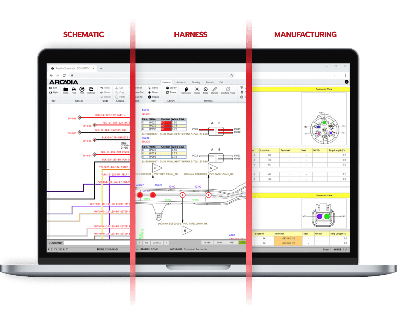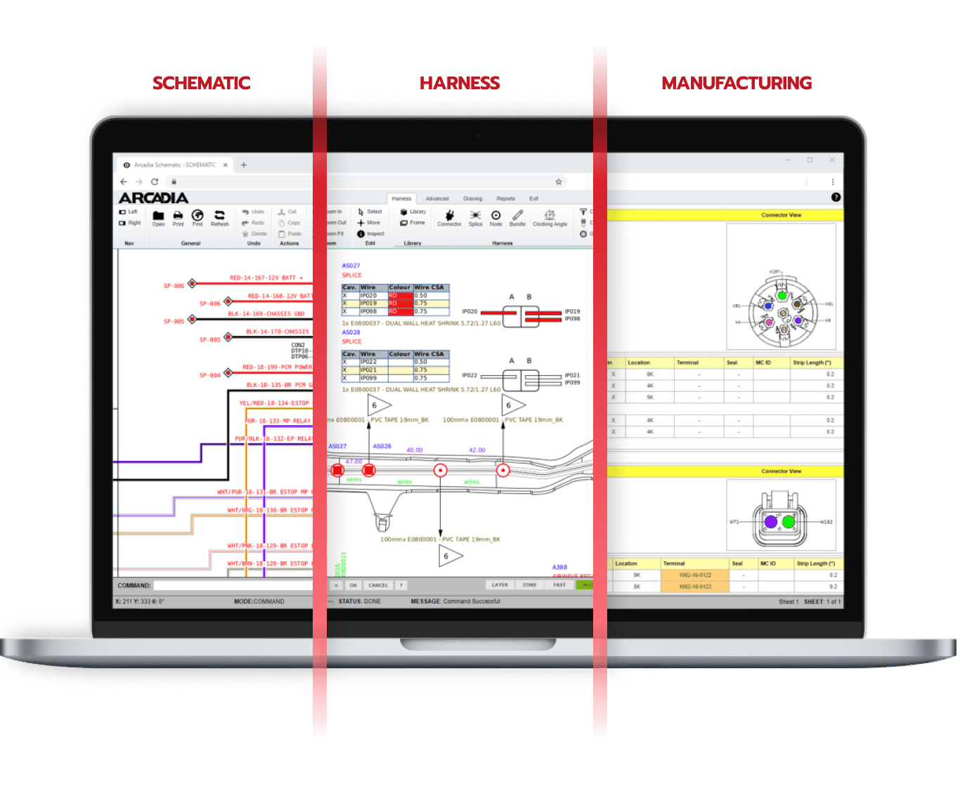 Arcadia harness design software is a suite of intelligent electrical design tools that helps engineers create error-free schematics, automate connectivity checks, and seamlessly transition to wire harness manufacturing.